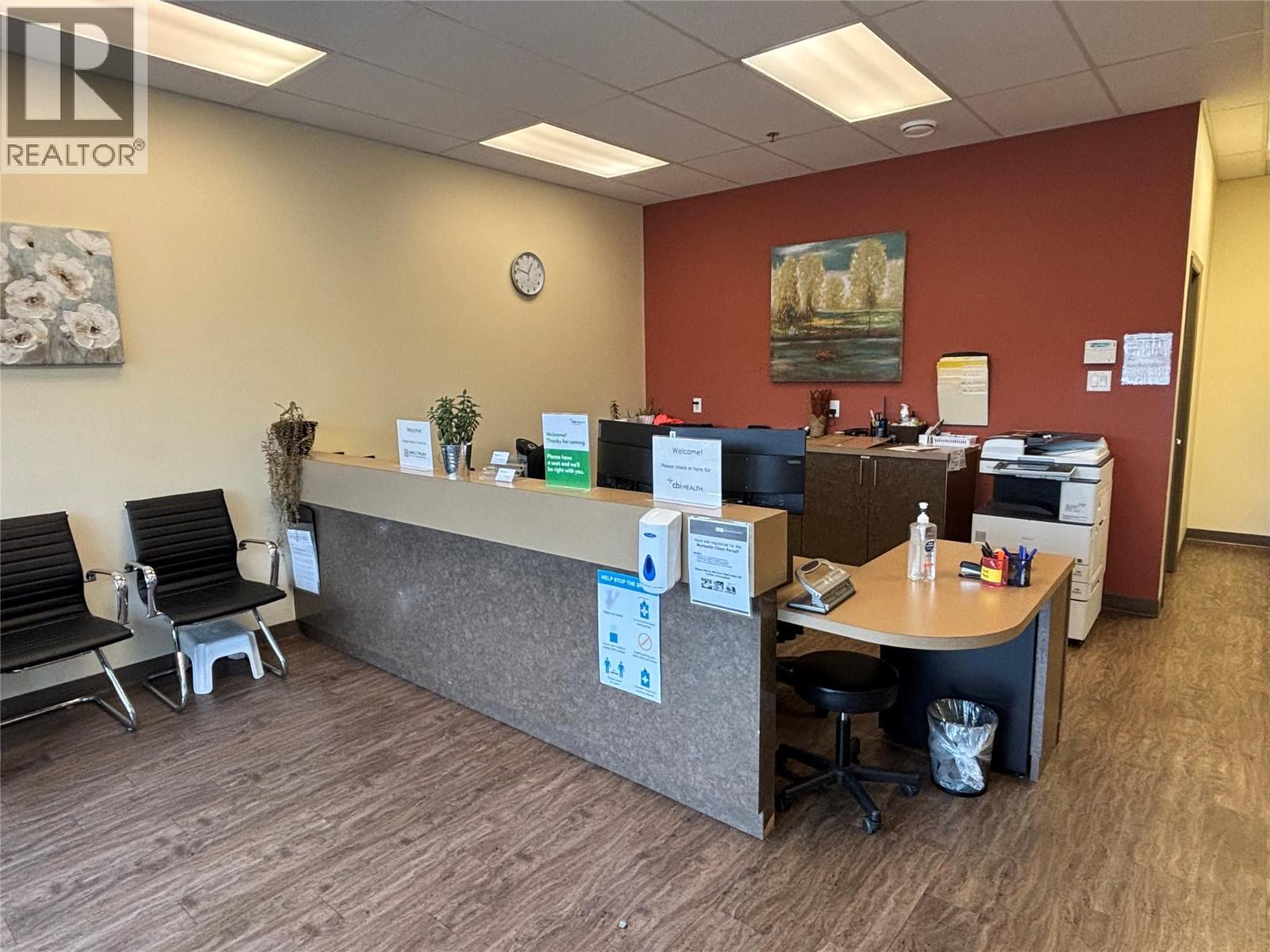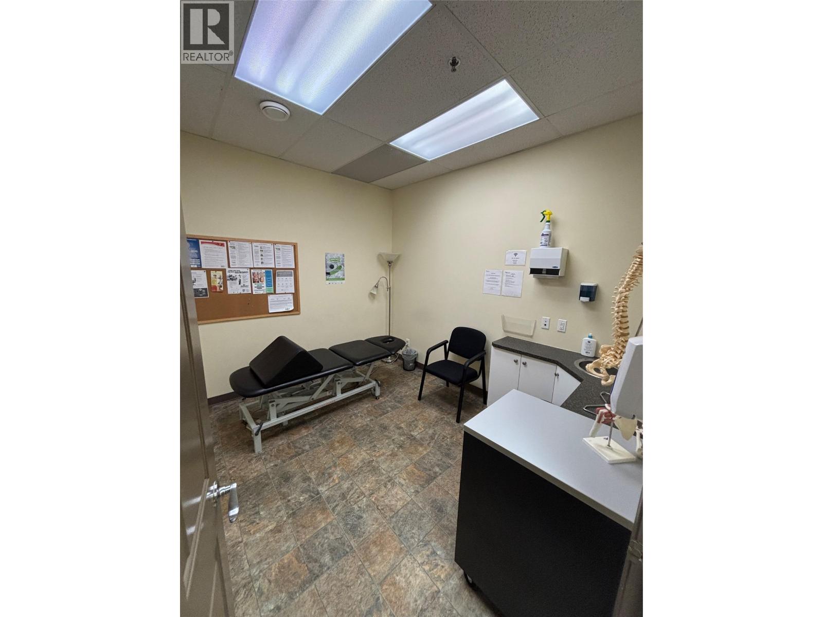 This 3,114 SF unit is available for SUBLEASE. Well appointed, turn-key space including a front reception area, 4 offices, 3 private patient rooms, kitchen/staff room, service room, laundry room, two bathrooms, and an open area at the rear of the unit (previously used as a gym/treatment space). Located along Baron Road, the property benefits from high visibility and steady vehicle traffic, making it an ideal location for businesses seeking strong exposure in one of Kelowna’s busiest commercial corridors. Neighboring tenants include Play It Again Sports, Beachcomber Home & Leisure, Once Upon A Child and Plato's Closet. Pylon signage included at a cost of $50 per month. The unit is available immediately with a sublease term until February 28, 2028. (id:6770)