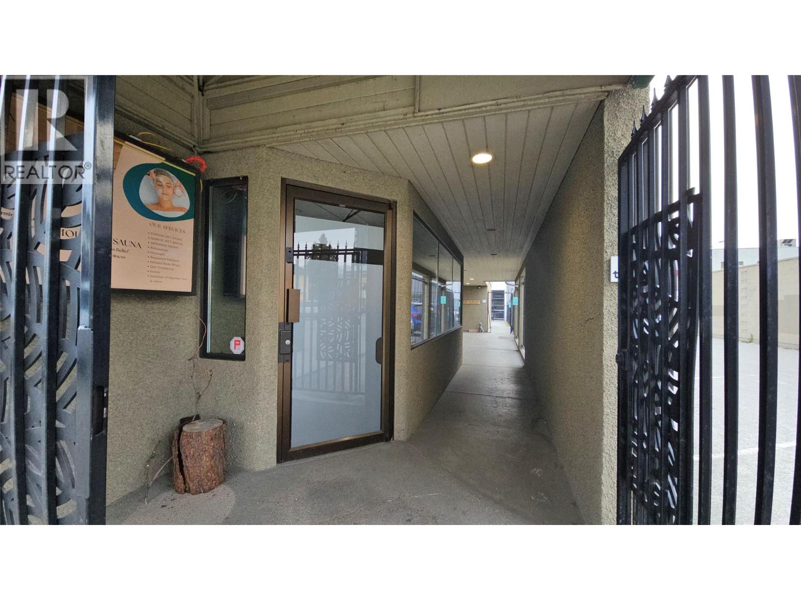 Prime downtown Kelowna commercial space for lease offering approximately 2,000 sq. ft. of versatile retail or office space located in the Downtown Urban Centre. The unit is currently built out with multiple enclosed rooms and includes two washrooms and a real wood sauna, making it well suited for professional services, wellness, medical, office, or boutique retail uses. The space can be demised into two smaller units depending on tenant requirements, providing flexibility for a variety of business needs. A rare downtown feature, the property includes three dedicated, secure, fenced parking stalls for staff or clients. Zoned UC1 – Downtown Urban Centre, the location supports a wide range of commercial uses and benefits from excellent walkability, exposure, and proximity to downtown amenities. Three dedicated parking stalls fenced in. 2018 Hot water tank PEX plumbing, 2020 furnace, two furnaces. Include gated storefront, gated walkway, front desk, rsting area, waiting area, 3 showers, 7 sinks, 2 toilets, sauna and 4 entrances (main entrance, two side entrance and a back door). (id:6770)