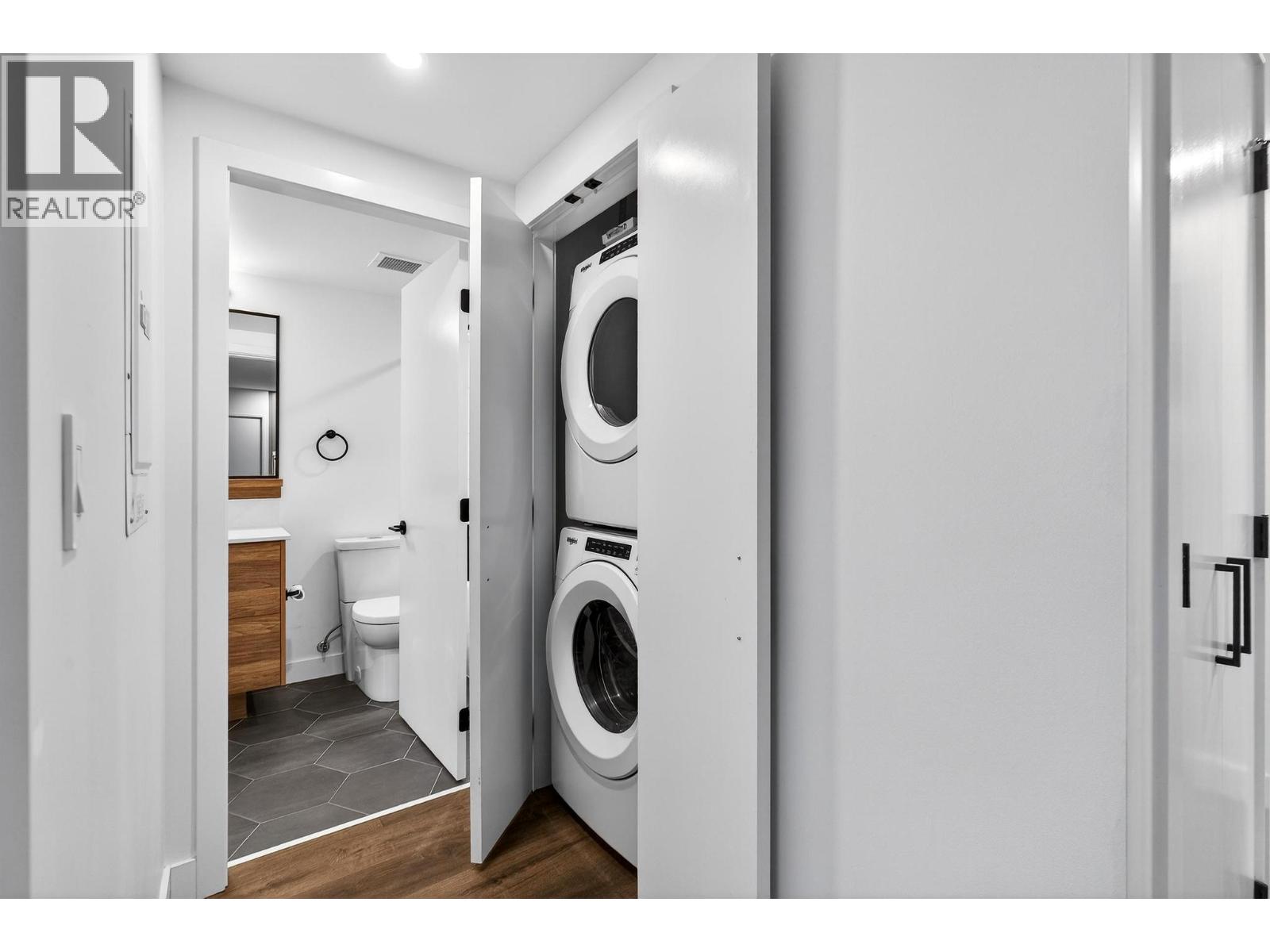 Right in the heart of Downtown Kelowna, this stylish one-bedroom condo in the prestigious Brooklyn high-rise offers a truly walkable urban lifestyle just steps from Okanagan Lake, dining, shopping, and more. Designed with modern living in mind, expansive windows fill the home with natural light while showcasing unobstructed east-facing mountain views of Dilworth, Knox and Black Mountain from the covered balcony. Inside, the thoughtfully designed layout features contemporary finishes including vinyl plank flooring and quartz countertops. The sleek kitchen comes fully equipped with a refrigerator, electric cooktop, oven, microwave, and dishwasher, while the open living space flows effortlessly for both everyday living and entertaining. The four-piece cheater ensuite features a tiled tub surround, and a convenient stacking washer and dryer is neatly tucked into the hall closet. Additional highlights include window coverings and efficient forced-air heating and cooling for year-round comfort. Brooklyn offers an exceptional collection of amenities, including a rooftop patio with a communal BBQ area and kitchen, a stunning rooftop terrace with panoramic lake and city views, a stylish resident lounge and social space, a dog wash station, secure underground parking, and bike storage. With ground-floor retail and a pet-friendly policy, this is modern downtown living at its finest - perfect for professionals, investors, or those seeking an elevated urban lifestyle! (id:6770)