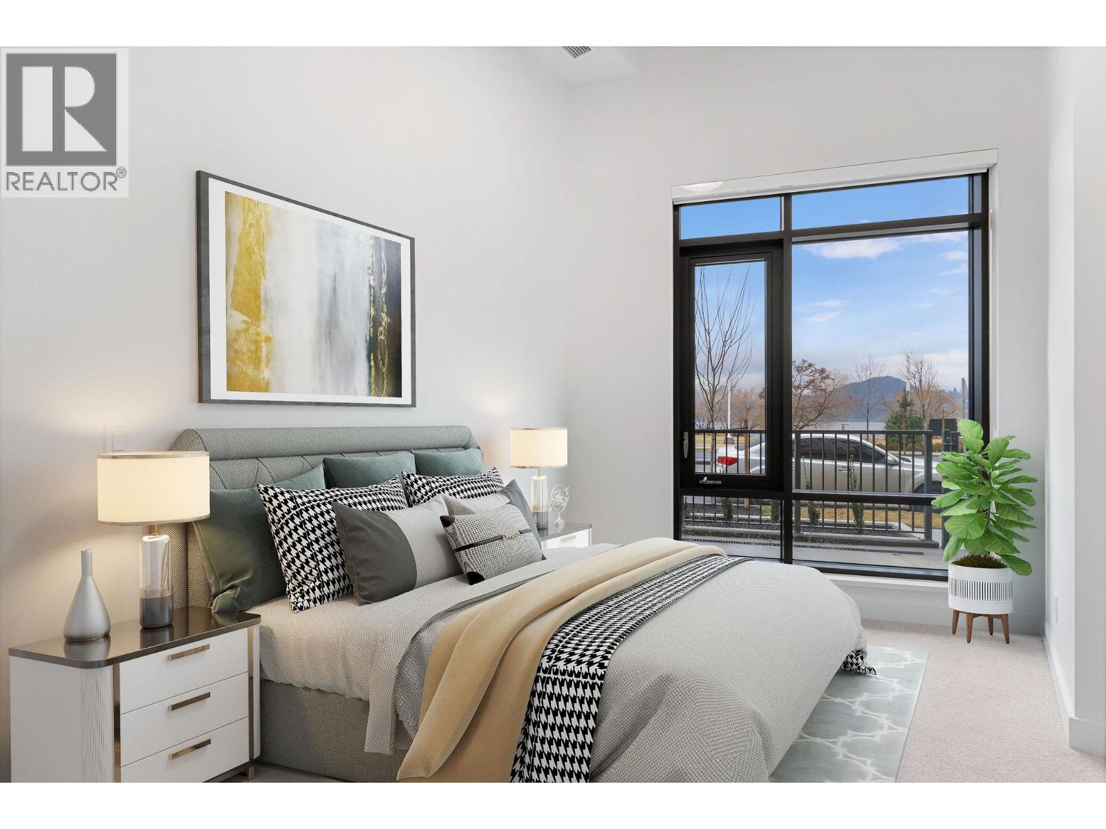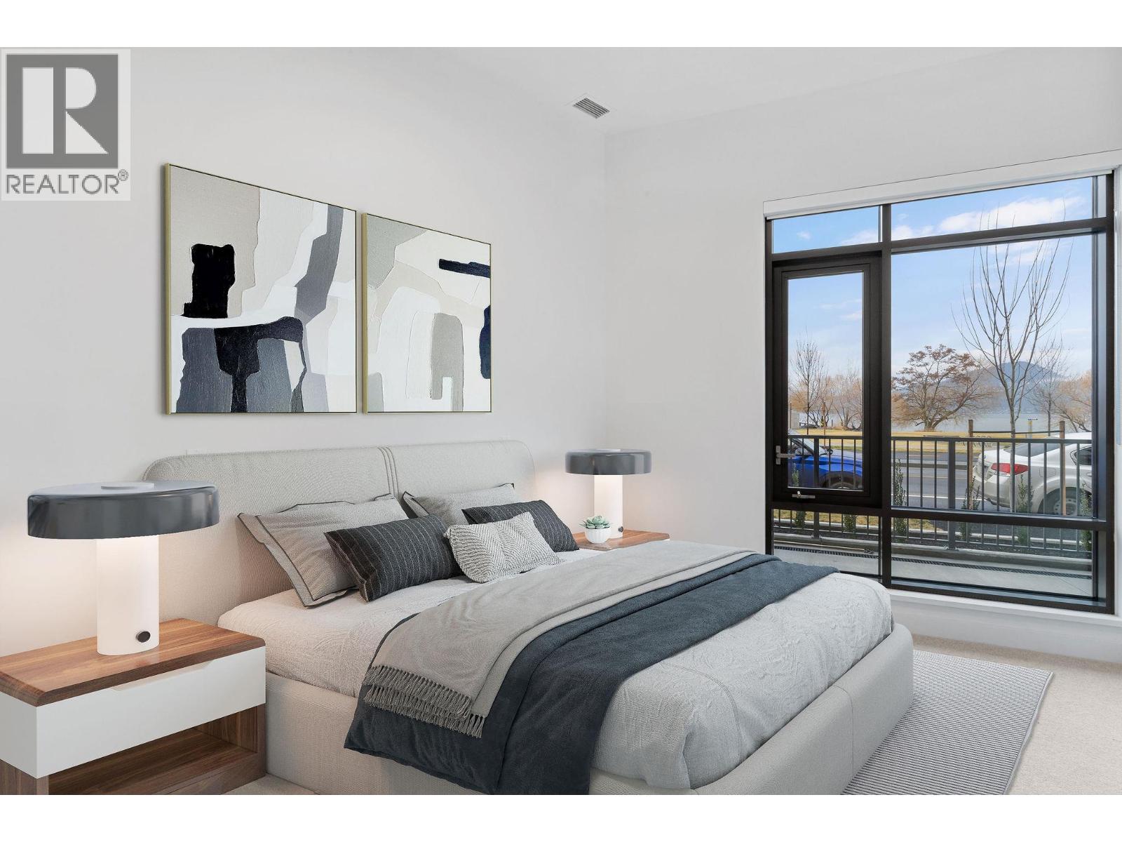 This ground-level townhome offers 2 bedrooms + den, 2 bathrooms, and impressive 11-foot ceilings that create a bright, airy feel throughout. The thoughtfully designed layout features an open-concept living space, modern kitchen with premium finishes, and expansive windows showcasing beautiful west-facing lake views. Enjoy seamless indoor-outdoor living with direct walk-out access from your front door to Abbott Street and the waterfront beyond — perfect for morning strolls and evening sunsets. The spacious primary suite includes a spa-inspired ensuite, while the second bedroom and versatile den which provides flexibility. Residents can enjoy amenities incl. an 8,000 sq ft lakeview terrace w/firepits, BBQs, and community gardens as well as a fully equipped fitness center, dog wash, & bike maintenance station. With a walk score of 93, you’re steps from transit, KGH, shops & restaurants of vibrant Pandosy Village, and beautiful Okanagan Lake. sq ft and room sizes are approximate and may vary. Photos may be of a similar home and layout and virtually staged. This home is newly constructed and move-in ready. (id:6770)