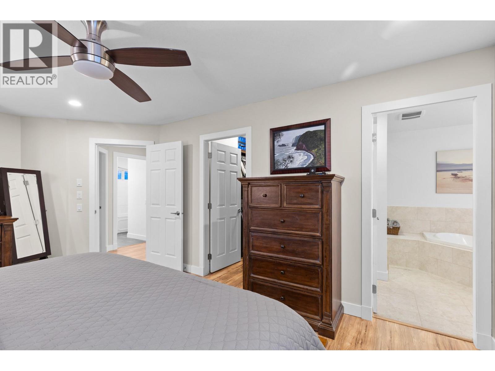 An outdoor enthusiast’s dream with hundreds of kilometres of riding and hiking trails directly across the road—then come home to your own pool and hot tub. This beautifully maintained 6 bed, 4 bath home in The Lakes offers 3,675 sqft of updated living space, including a 500+ sqft suspended slab bonus room. Built in 2009 on a 0.22 acre lot, it features fresh paint, new flooring, quartz counters, custom cabinetry, a dual sided gas fireplace, and a modern kitchen with new appliances and an induction cooktop. Comfort is enhanced by 3 zone heating/cooling, a newer furnace, and a newer hot water tank. A fully legal 1 bedroom suite—with its own kitchen, laundry, and sound insulation—provides excellent income potential; similar suites rent for approx. $1,600/month. The spacious primary suite includes a walk in closet, soaker tub, and a walk in shower with dual heads. Outdoor living excels with two Duradek decks: one covered for shade and fireside evenings, the other ideal for sun, pool time, and the hot tub. The newly landscaped yard offers fruit trees, raised beds, in ground sprinklers, a fire pit with woodshed, a powered outdoor bar, privacy fencing, and extensive storage. An above ground pool with deck, a 25' x 24' garage, 50' RV parking, and space for 10+ vehicles complete this exceptional Lake Country package. (id:6770)