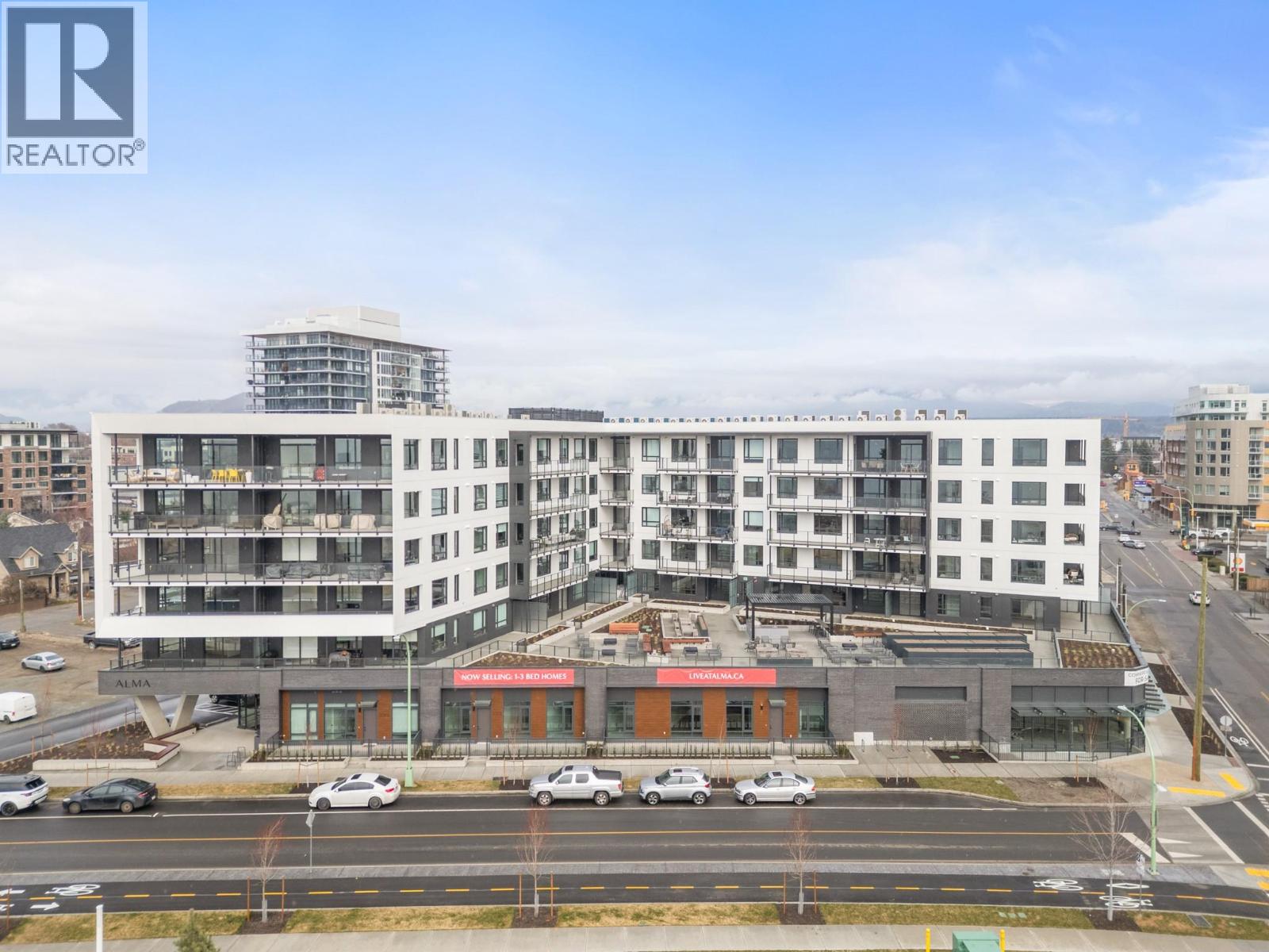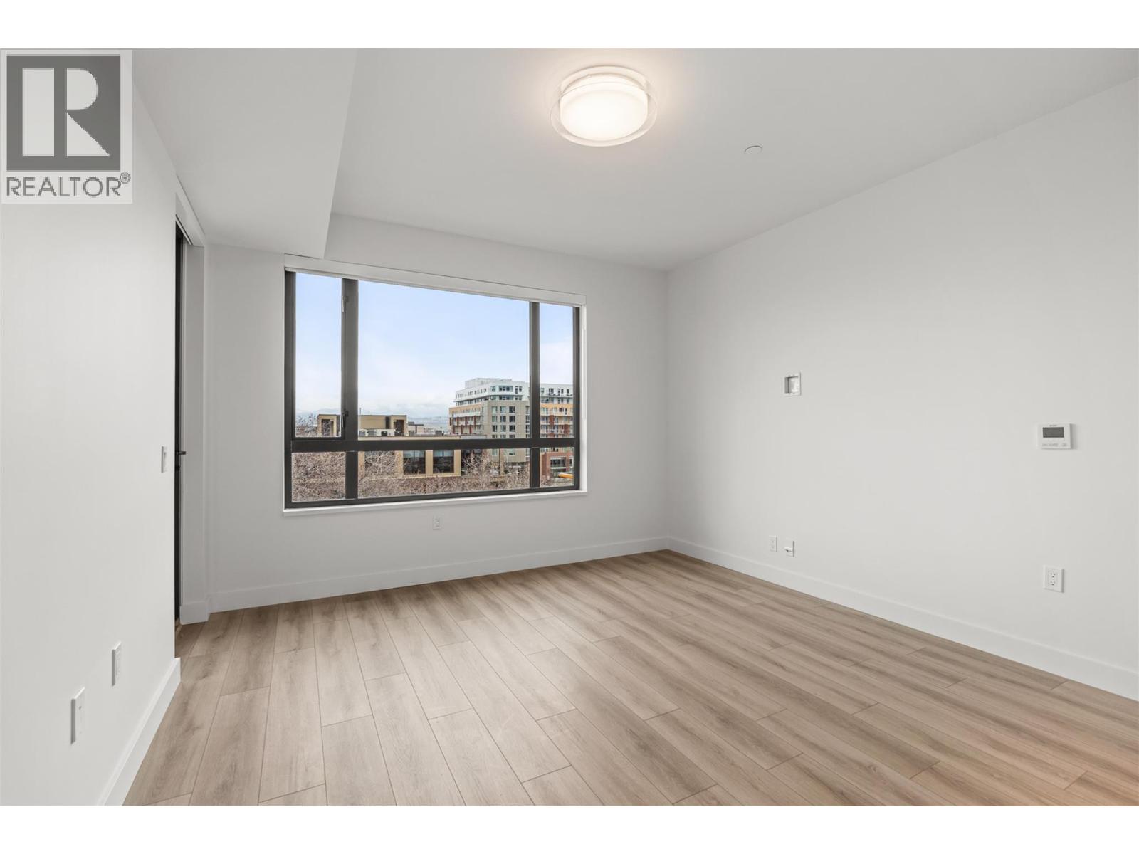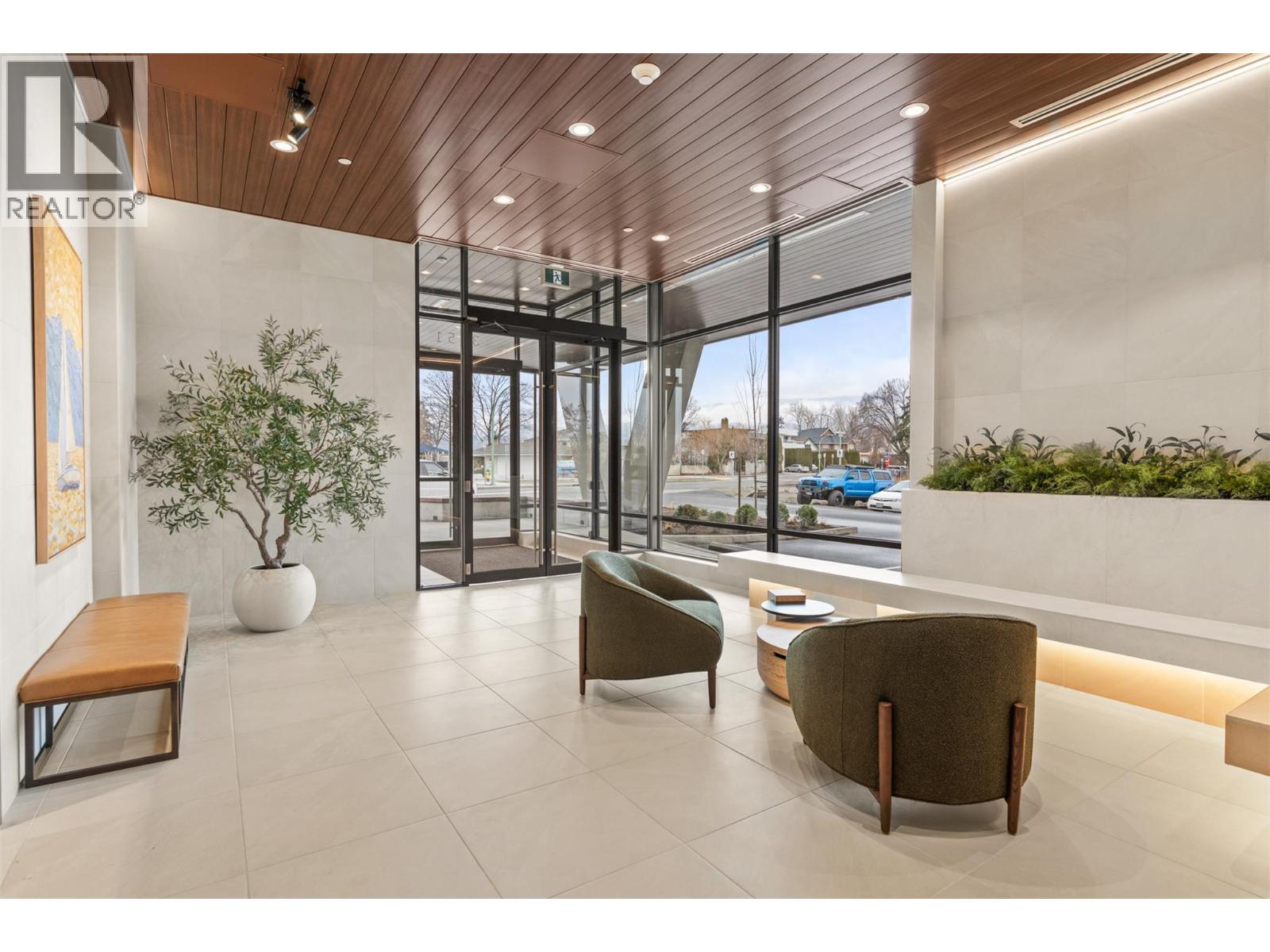Introducing ALMA, proudly crafted by Mission Group. This 5th floor east-facing 1-bed, 1-bath home is filled with beautiful morning light, offering 540 sqft of interior living plus a 100 sqft terrace, seamlessly pairing intentional design with elevated finishes in the heart of the Lower Mission. The striking kitchen features sleek flat-panel wood-grain cabinetry, a dramatic quartz waterfall dining island, and premium stainless-steel appliances. The open-concept layout is perfectly suited for everyday living and effortless entertaining, enhanced by expansive windows that flood the home with natural light, durable laminate flooring through the main living areas, and plush woven broadloom carpeting in the bedroom. The primary suite boasts a walk-through closet, while the ensuite showcases large-format tile, a rainfall shower, custom-tiled niche, and soft ambient lighting that creates a retreat-like escape. Additional highlights include roller shades on every window, individually controlled heating and cooling, and one secure underground parking stall. Residents enjoy access to amenities including an 8,000 sqft lakeview terrace with firepits, BBQs, and community gardens, plus a fully equipped fitness centre, dog wash, and bike maintenance station. With a walk score of 93, you’re just steps to transit, KGH, the shops and dining of vibrant Pandosy Village, and the shores of Okanagan Lake. Sqft and room sizes are approximate and may vary. This newly constructed home is move-in ready (id:6770)