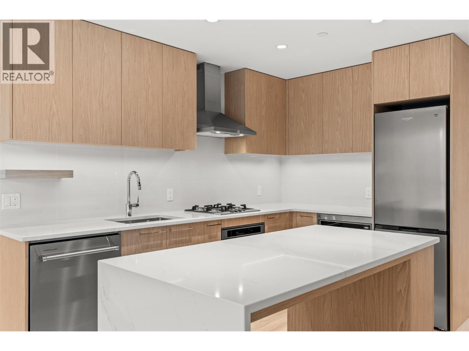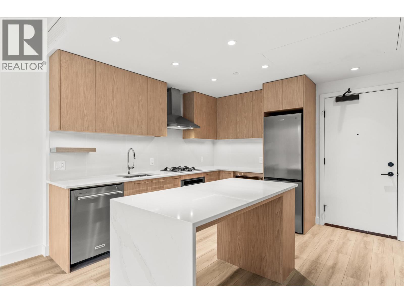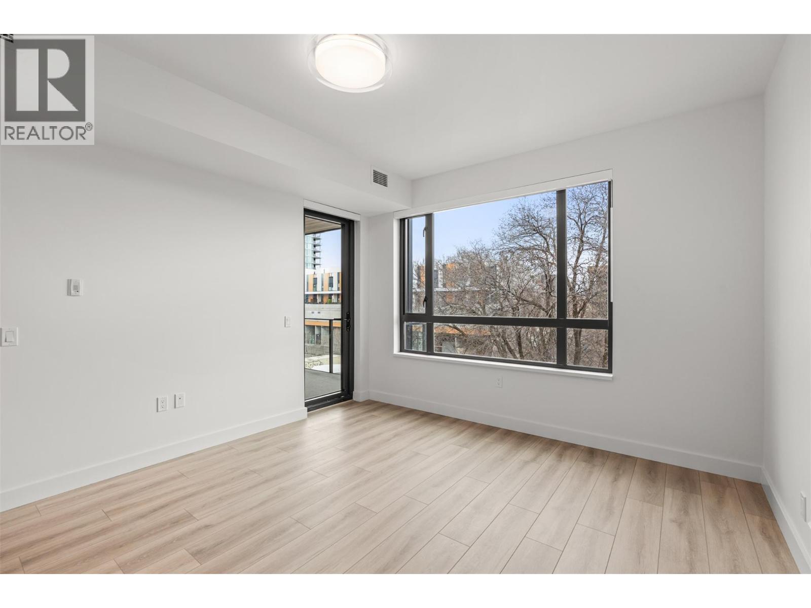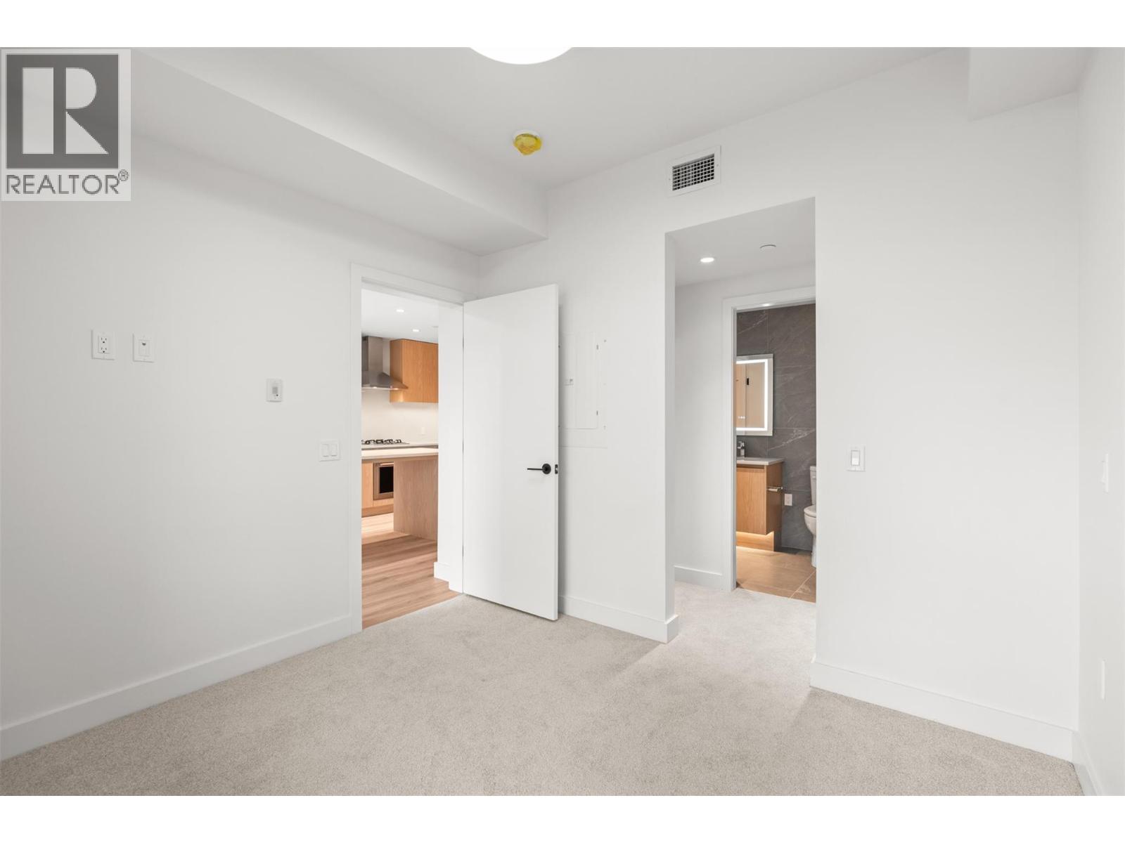 Presenting ALMA, built by Mission Group. This luminous, 3rd floor east-facing 1-bed, 1-bath residence welcomes gorgeous morning sun, offering 540 sqft of interior space plus a 100 sqft terrace, effortlessly blending purposeful design with upscale finishes in the heart of the Lower Mission. The impressive kitchen showcases streamlined flat-panel wood-grain cabinetry, a bold quartz waterfall dining island, and premium stainless-steel appliances. The open-concept plan is ideal for daily living and seamless entertaining, elevated by oversized windows that bathe the home in natural light, durable laminate flooring throughout the main living areas, and soft woven broadloom carpeting in the bedroom. The primary suite features a walk-through closet, while the ensuite is appointed with large-format tile, a rainfall shower, custom-tiled niche, and gentle ambient lighting that creates a spa-like retreat. Added features include roller shades on every window, individually controlled heating and cooling, and one secure underground parking stall. Residents enjoy access to amenities including an 8,000 sqft lakeview terrace with firepits, BBQs, and community gardens, along with a fully equipped fitness centre, dog wash, and bike maintenance station. With a walk score of 93, you’re moments from transit, KGH, the shops and dining of vibrant Pandosy Village, and the shoreline of Okanagan Lake. Sqft and room sizes are approximate and may vary. This newly constructed home is move-in ready. (id:6770)