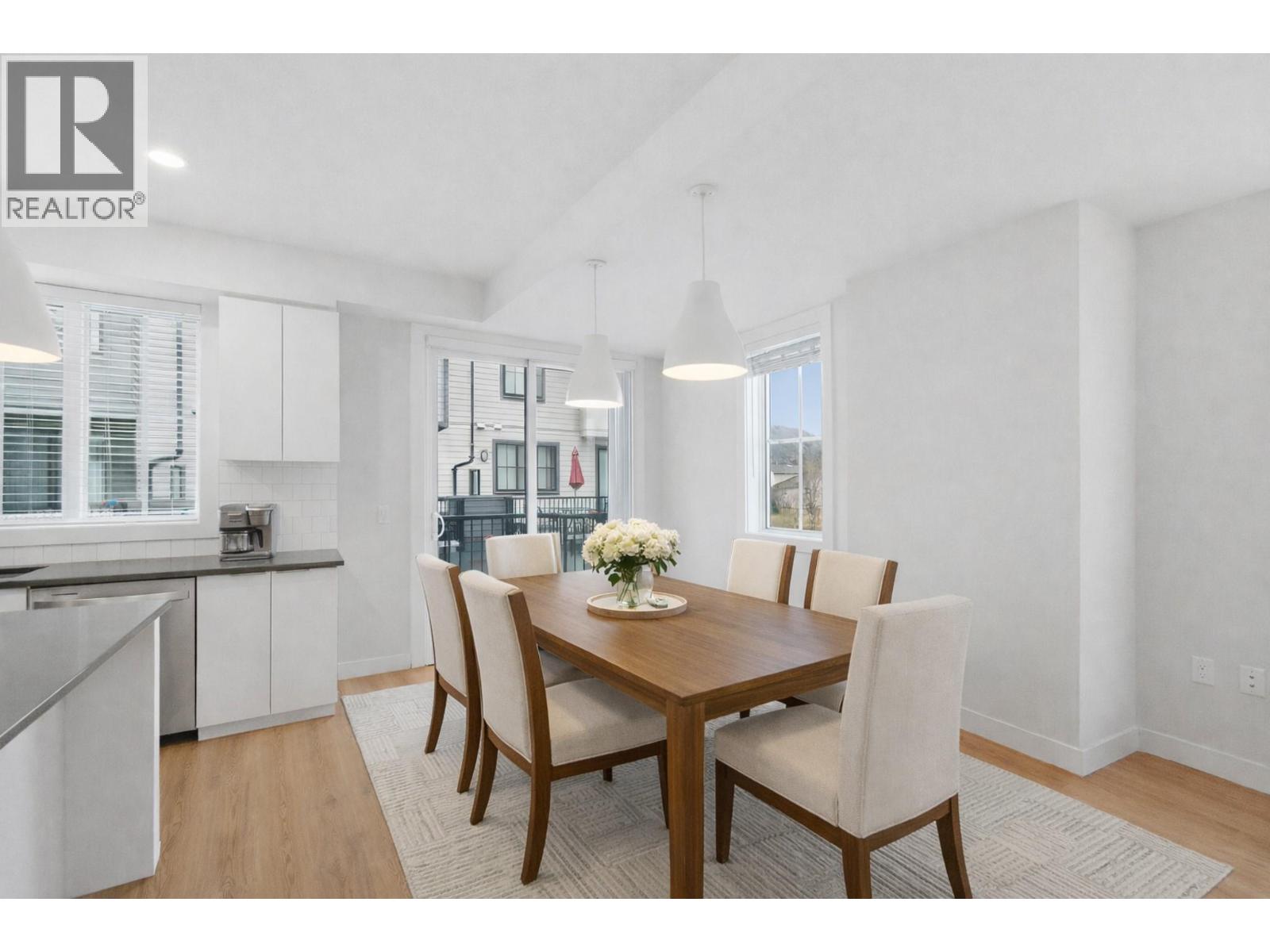 Welcome to Glen Park Row, nestled in the highly desirable North Glenmore community. This 2023-built, upgraded 4-bedroom, 3-bathroom END-UNIT townhome with DOUBLE GARAGE offers a preferred, quiet location within the complex, set back from the main road for added privacy. Enjoy hill-side and park views along with abundant natural light from extra windows throughout. With only one shared wall, this home feels bright, airy, and private. Offering 1,500 sq. ft. of thoughtfully designed living space, the open-concept main floor features laminate flooring throughout, stainless steel appliances, and a gas range. The kitchen is enhanced with a premium pantry rollout system and ample cabinet space. Upstairs, upgraded laminate flooring continues throughout. The spacious primary bedroom includes a walk-in closet and large ensuite, while two additional bedrooms, laundry, and a 4-piece bathroom complete the top floor. The entry level features a fourth bedroom, added as an upgrade ideal for guests, a home office, or extended family. Step outside to your private, fenced outdoor space, perfect for pets, kids, or quiet relaxation. A large double garage provides generous parking and additional storage. Ideally located just minutes from downtown Kelowna, UBC Okanagan, Kelowna International Airport, and close to parks, schools, shopping, and transit, this home delivers modern comfort in one of Kelowna’s most sought-after neighbourhoods. Pet friendly! Don’t miss this one! (id:6770)