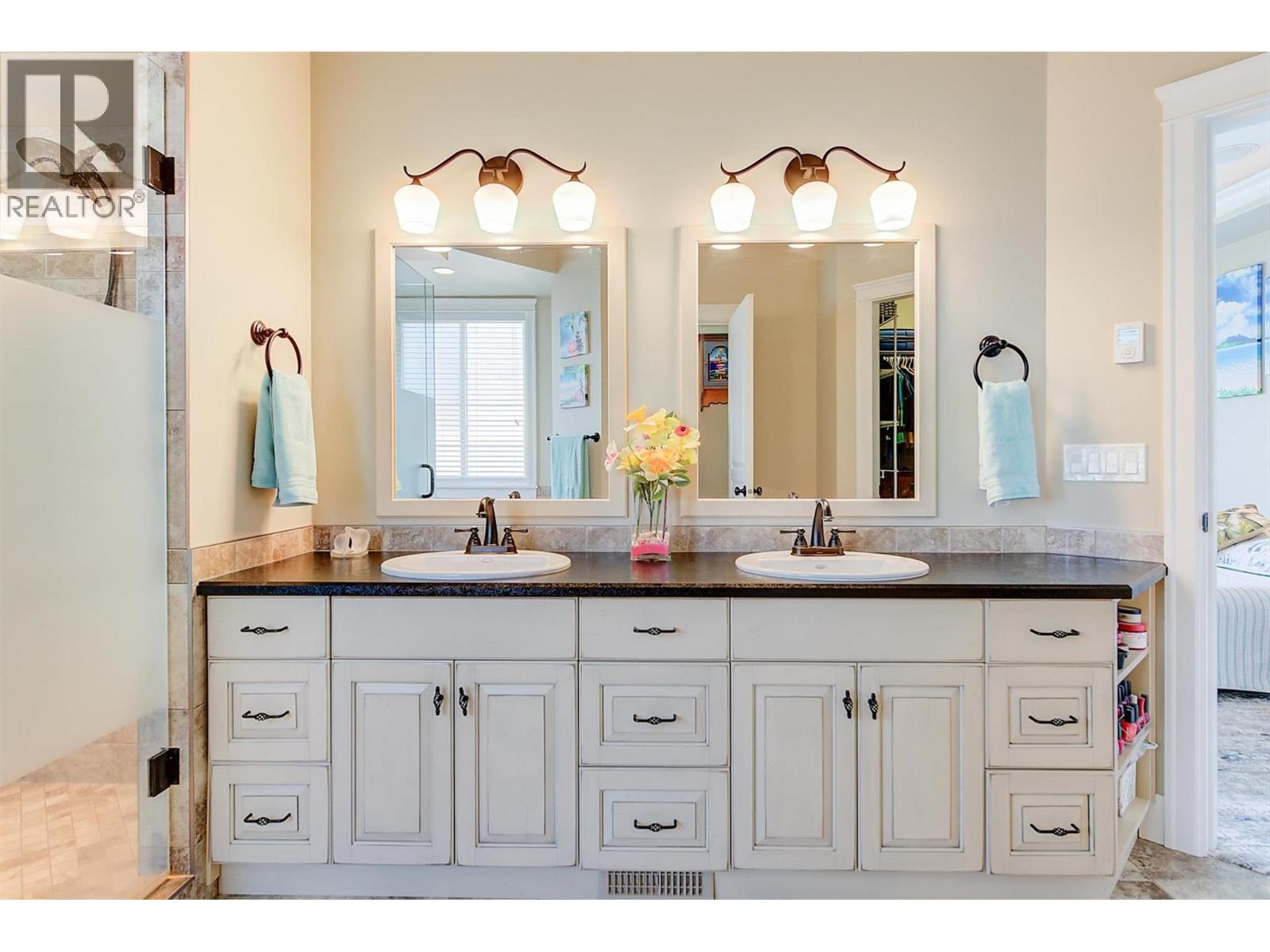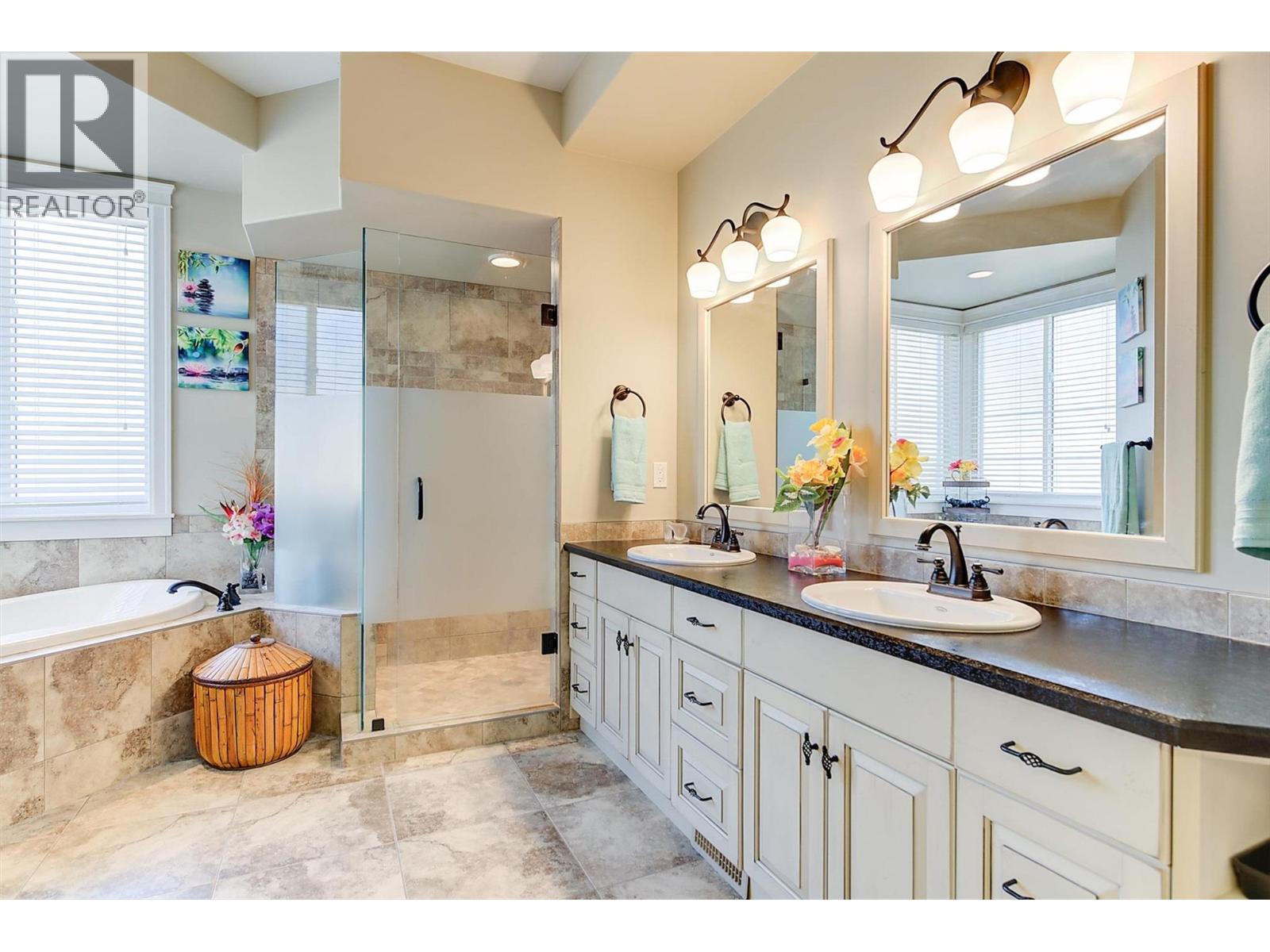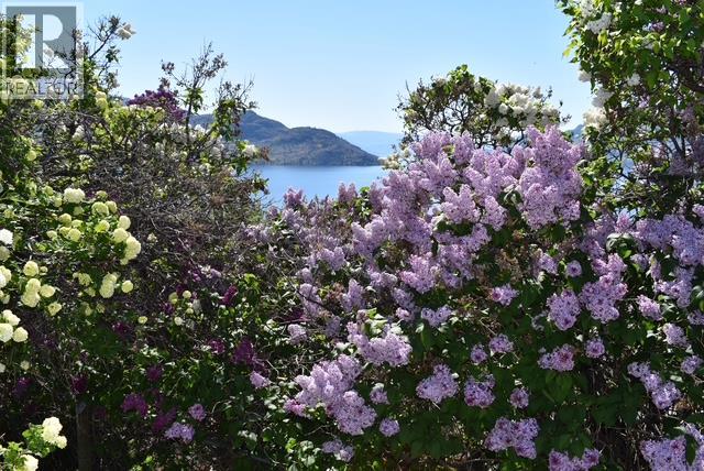 Perched to capture panoramic lake views from every level, this impressive 2011 custom-built home offers 2,447 sq. ft. of refined living space and exceptional craftsmanship throughout. A dramatic 20-foot grand entry welcomes you inside, where sunlight filters through authentic leaded glass windows. The upper level features an open-concept design with living and dining areas centered around a custom kitchen complete with a large island, gas range, and built-in wine fridge. An oversized stone gas fireplace anchors the living room, while French doors open to a covered patio surrounded by professional landscaping and uninterrupted lake views. The patio connects to a private gazebo with hot tub, perfect for relaxing and entertaining. The spa-inspired ensuite includes a glass shower, custom cabinetry, corner soaker tub, and private water closet, along with a spacious walk-in closet and laundry chute. Downstairs offers three generously sized bedrooms — each with lake views — and a full bathroom, ideal for family or guests. Additional highlights include a spacious garage with workbench and storage, custom paver stone driveway, striking stone exterior, and a six-zone irrigation system protecting the beautifully maintained landscaping. Enjoy morning sun from one of three front decks and evening sunsets from the hot tub. Located in sought-after Peachland, this exceptional home is just minutes from waterfront shops, dining, and small-town charm. Make your appointment today. (id:6770)