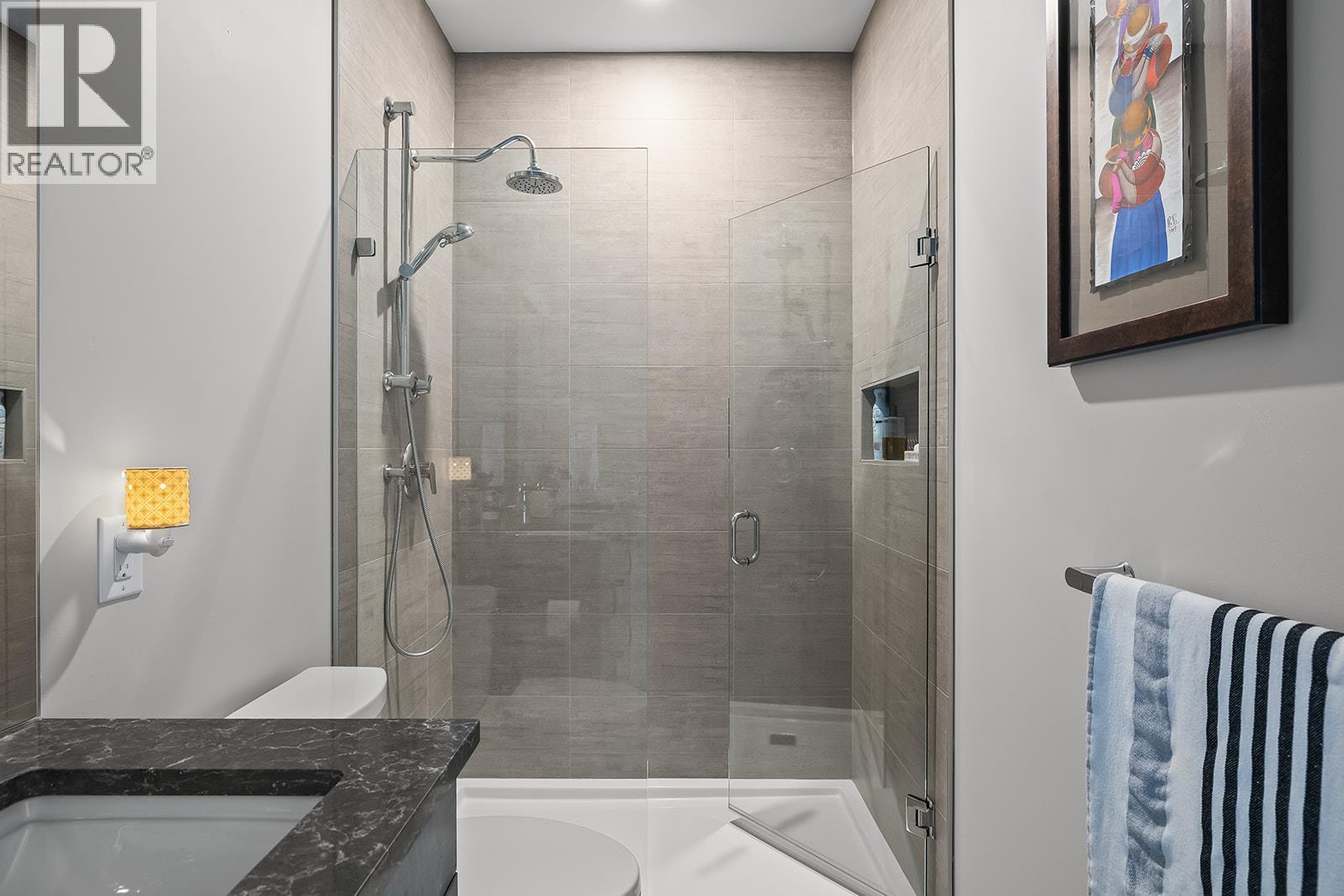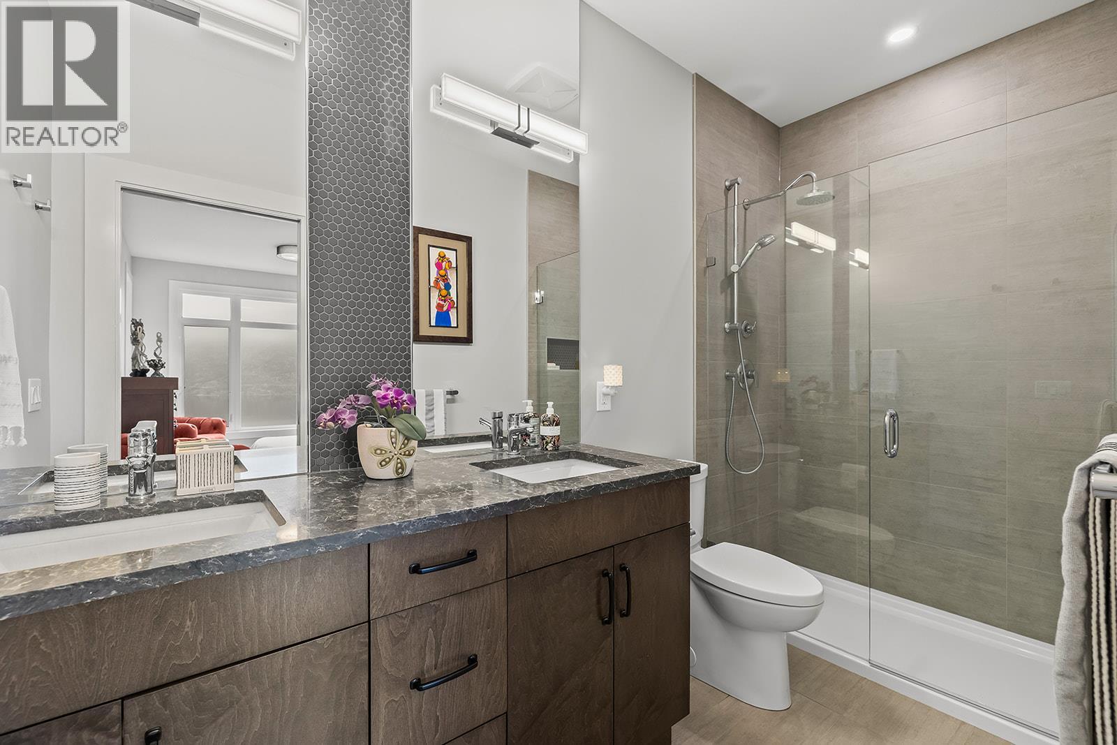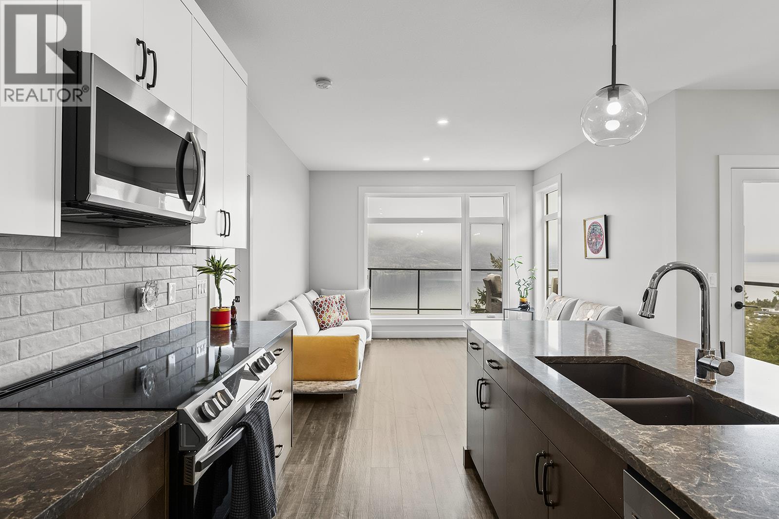 Experience the pinnacle of Okanagan living at Mezzo in McKinley Beach. This 2021-built, 3-bedroom rancher-style townhome offers an effortless ""lock-and-leave"" lifestyle with unobstructed lake and mountain views. Designed with sophistication and functionality in mind, the 1,616 sq. ft. floor plan features a seamless master-on-main layout. Features a primary suite with a full ensuite, high ceilings, and a gourmet open-concept kitchen with a central island. The lower level Includes two additional guest bedrooms, a full 4-piece bathroom, and a spacious recreation room. Quality vinyl flooring runs throughout, complemented by a double garage with professional epoxy coating and ample storage. Beyond your front door, the McKinley Beach community provides an unparalleled amenity package with access to the private marina, a kilometer-long beach, and groomed hiking trails. The nearby amenity centre features an indoor pool, fitness facility, sauna, hot tub, and sports courts. Pet-friendly and rental-ready with low monthly strata fees of $284. This is more than a home, it is a retreat for those who value nature, comfort, and modern design. (id:6770)